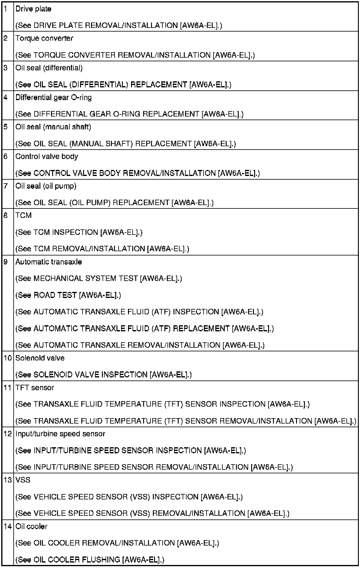 AUTOMATIC TRANSAXLE LOCATION INDEX [AW6A-EL]