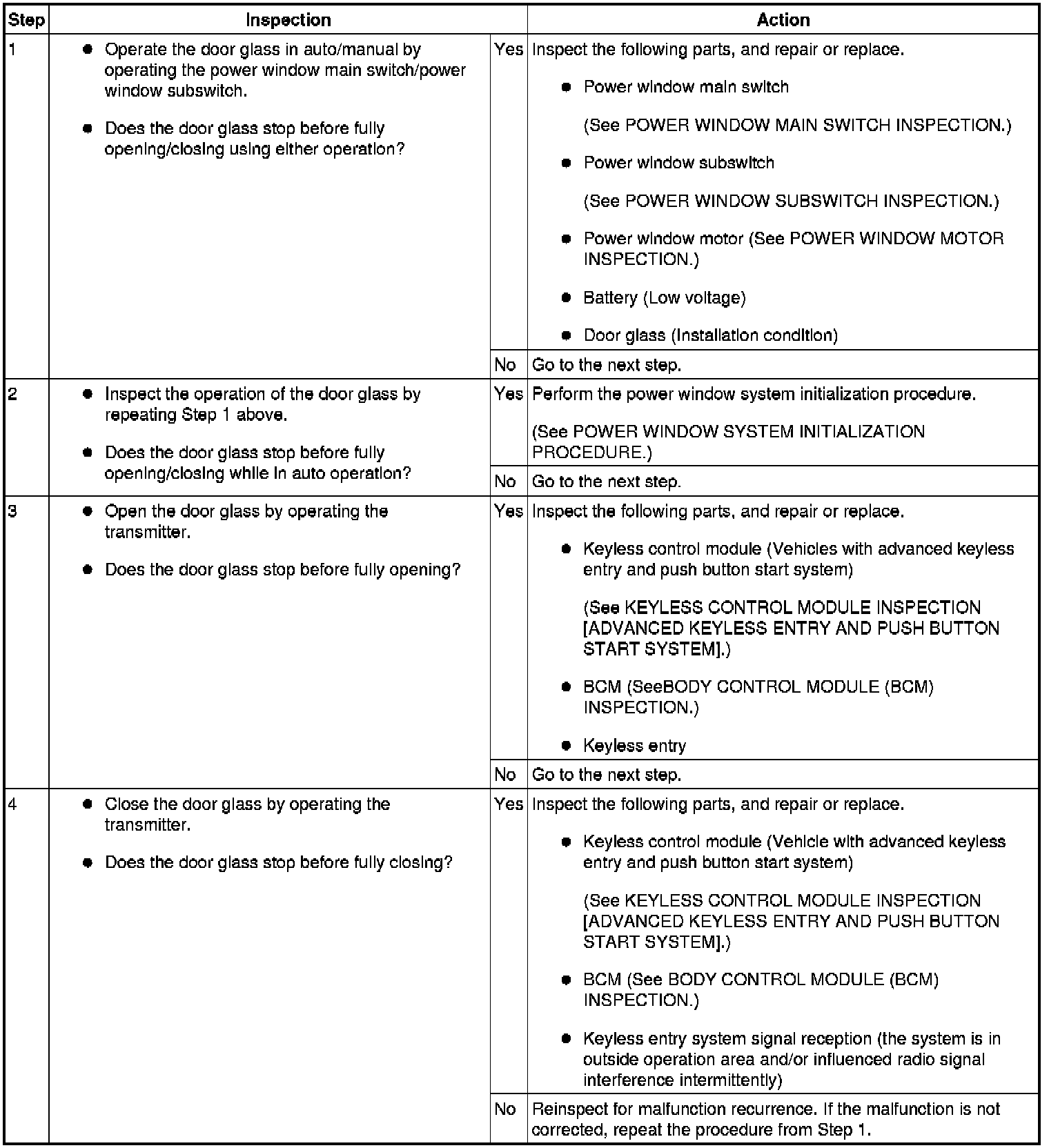 No.5 DOOR GLASS STOPS BEFORE FULLY OPENING/CLOSING [POWER WINDOW SYSTEMS (EXTERIOR OPEN/CLOSE FUNCTION)]