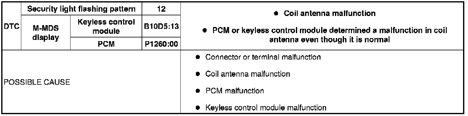 SECURITY LIGHT: 12, DTC: B10D5:13/P1260:00 [IMMOBILIZER SYSTEM (ADVANCED KEYLESS ENTRY AND PUSH BUTTON START SYSTEM)]