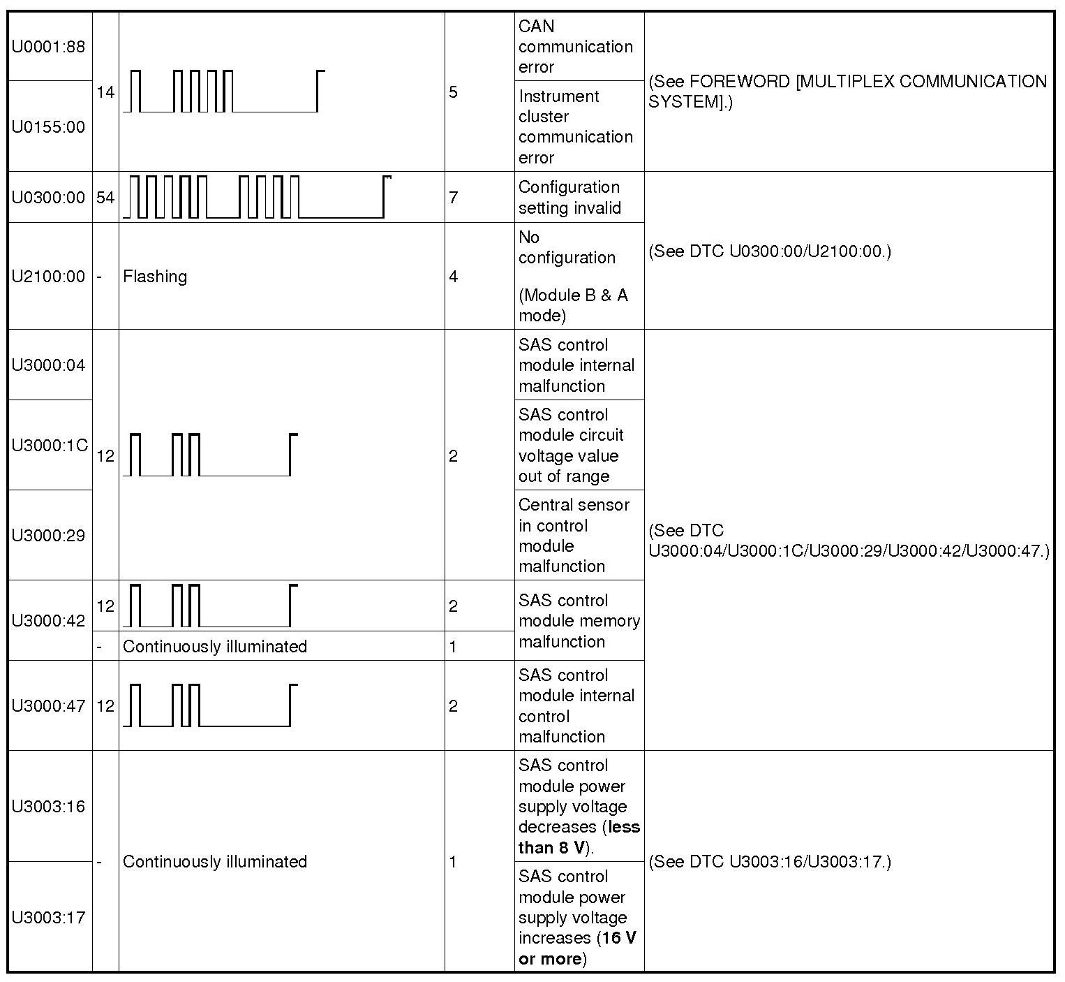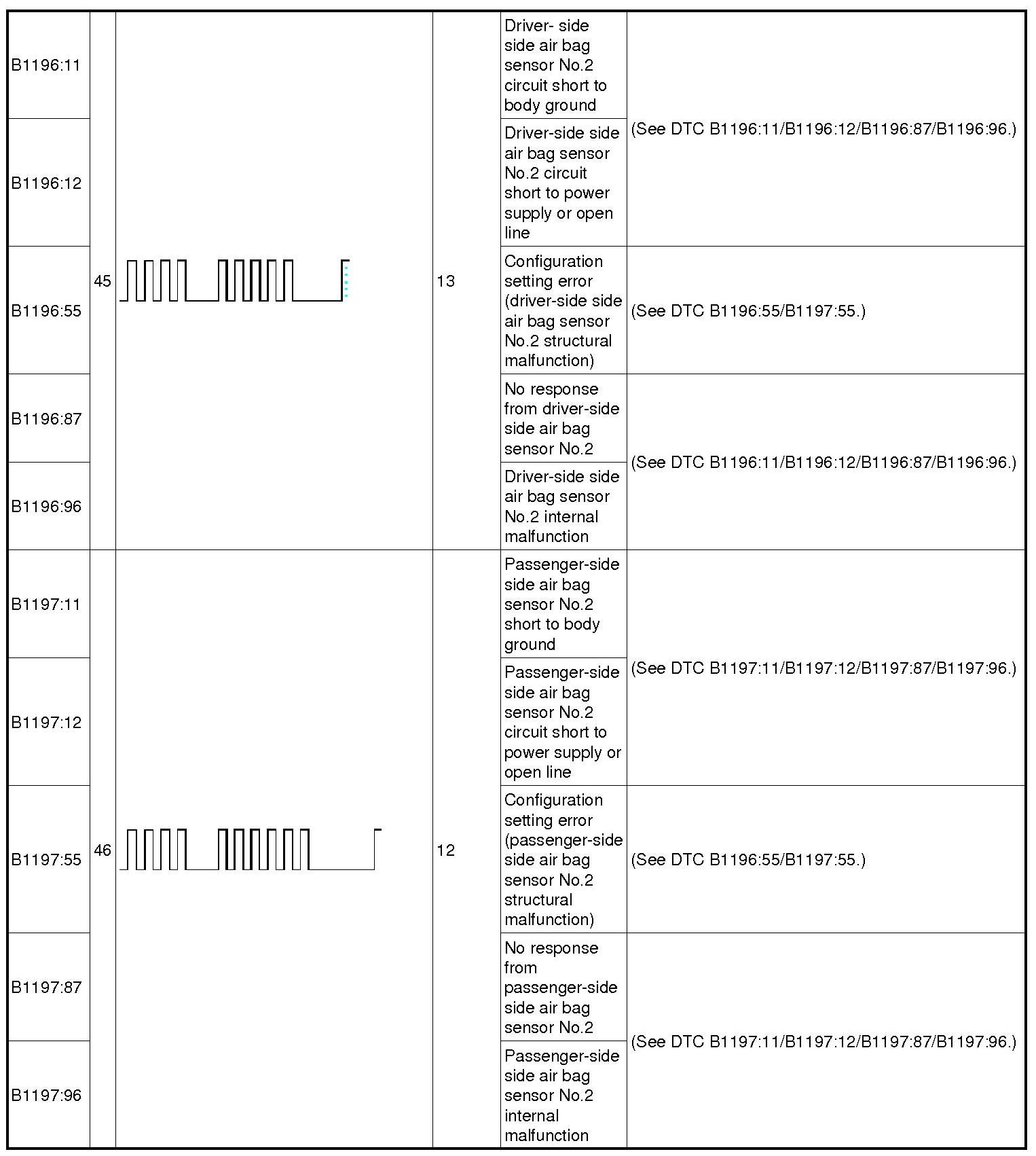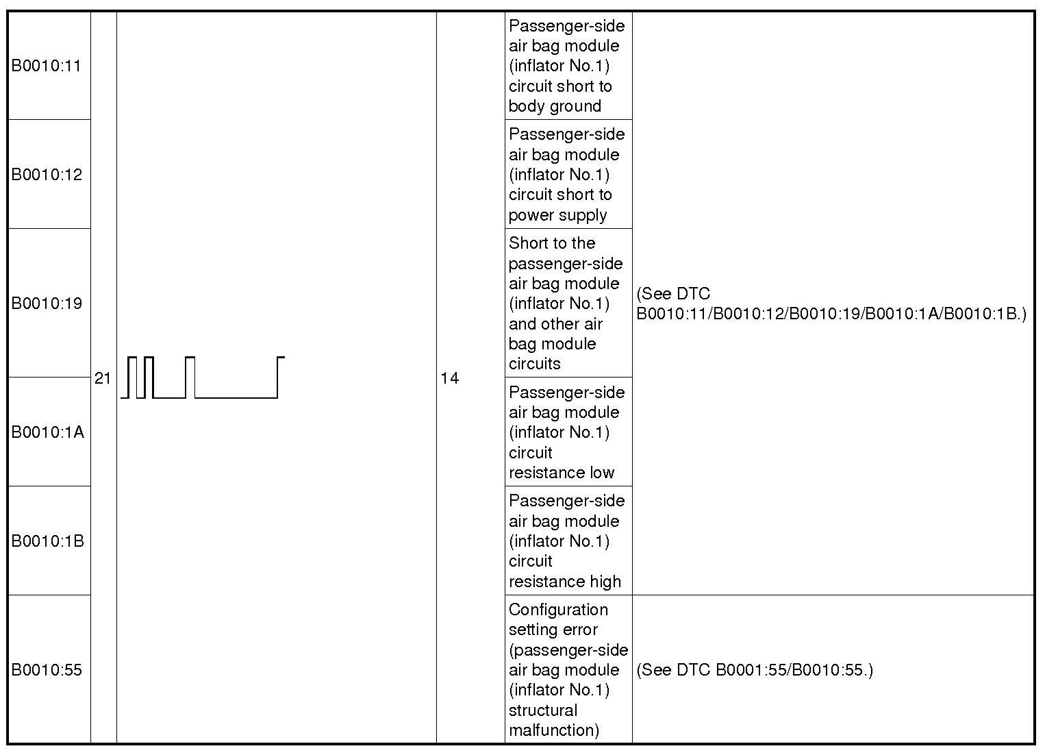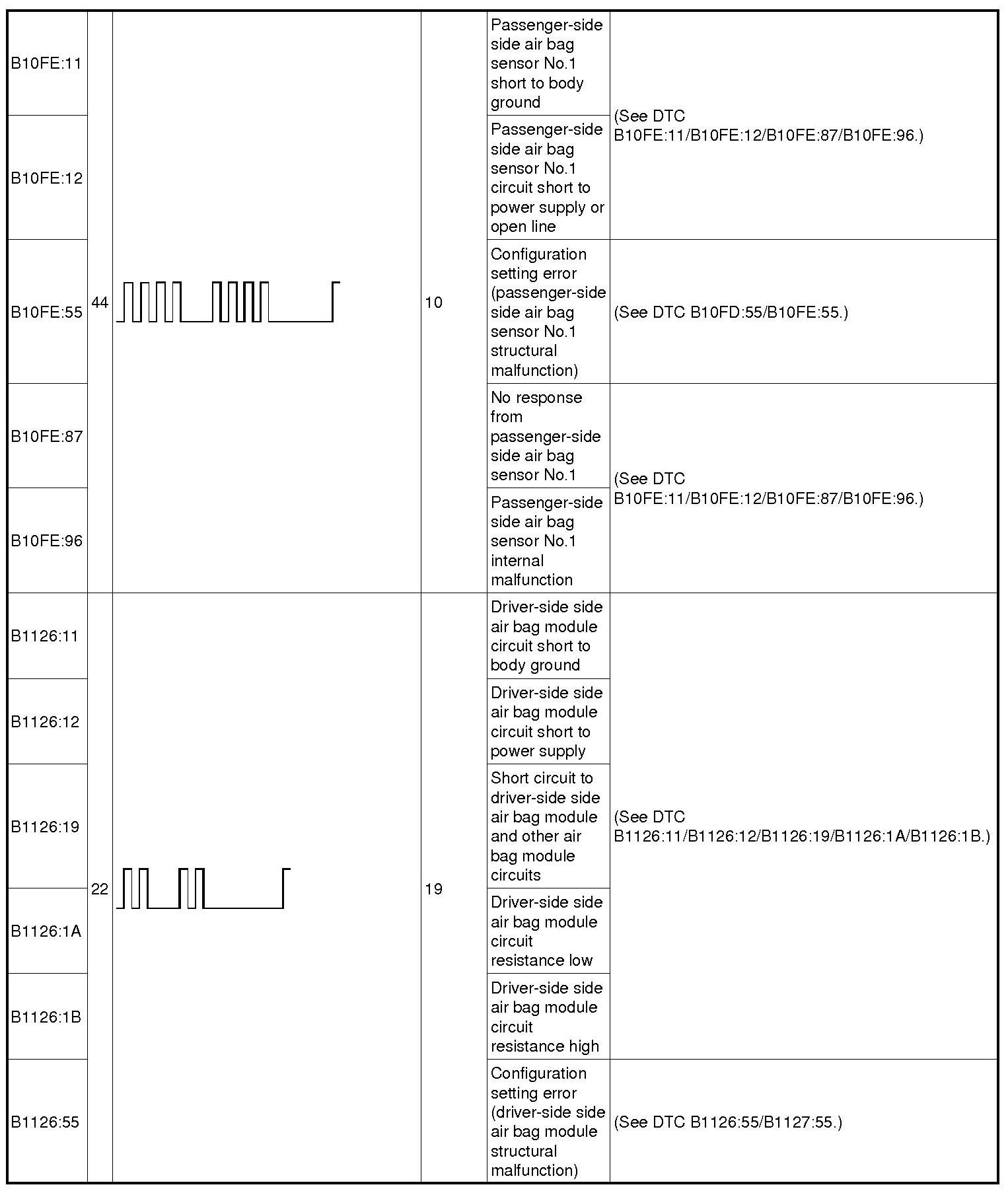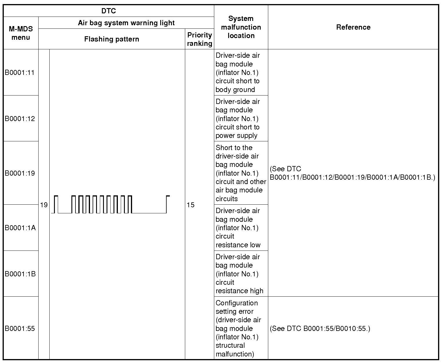 DTC TABLEB0001:11-B0001:55: