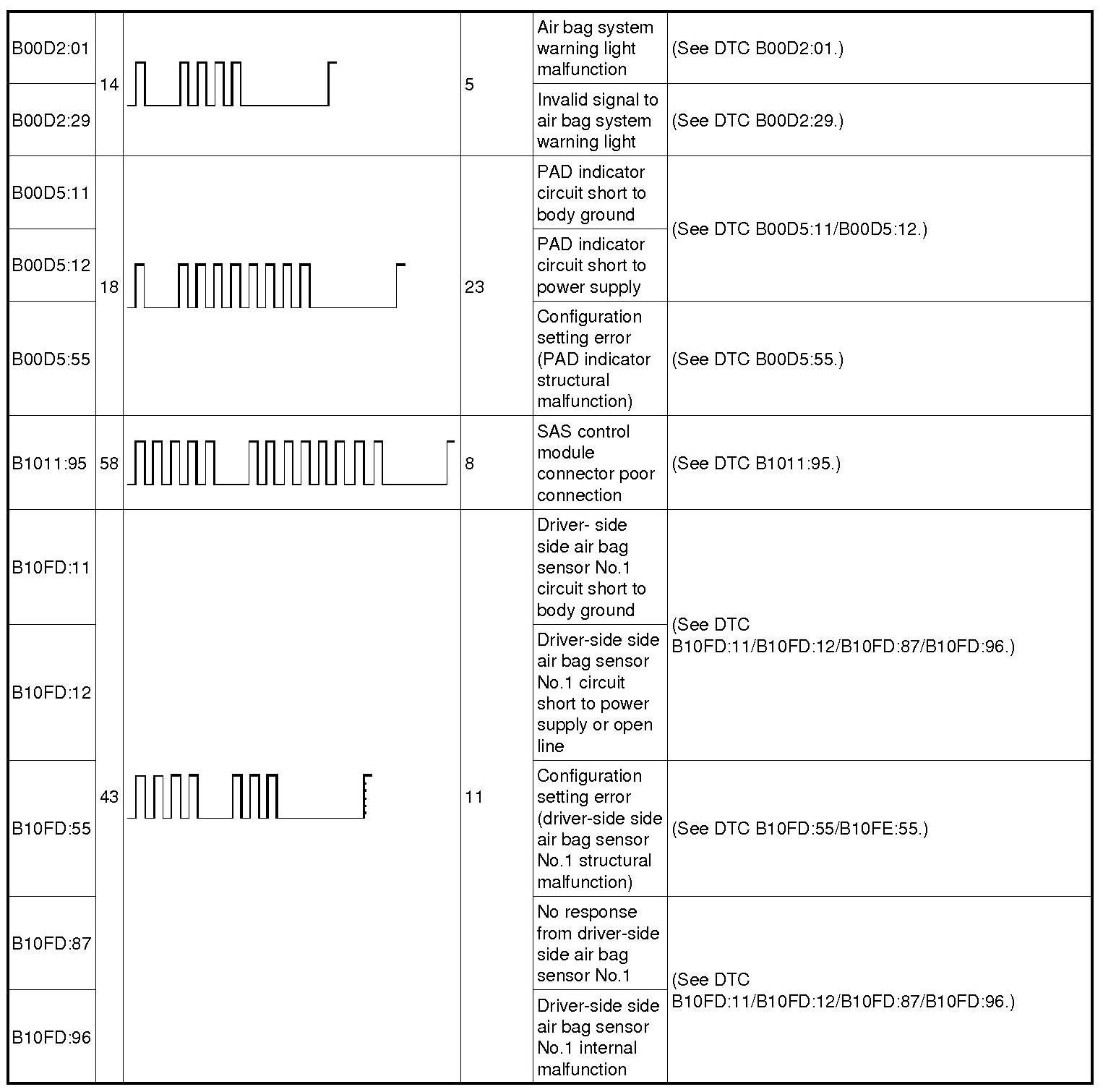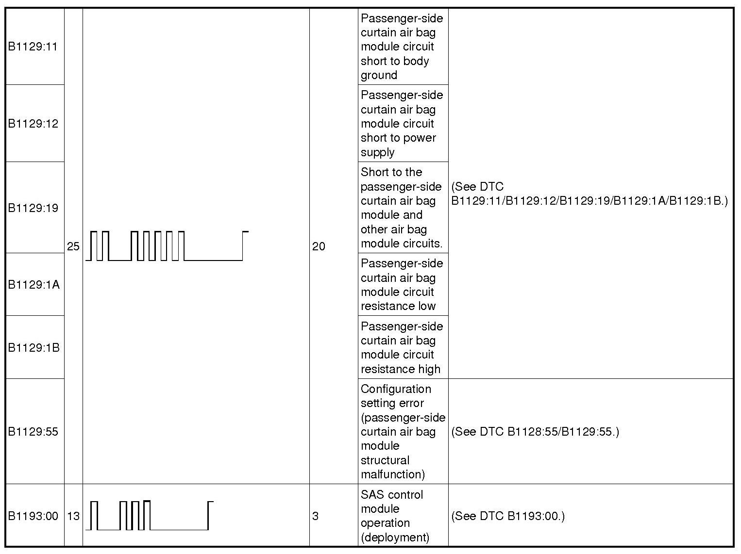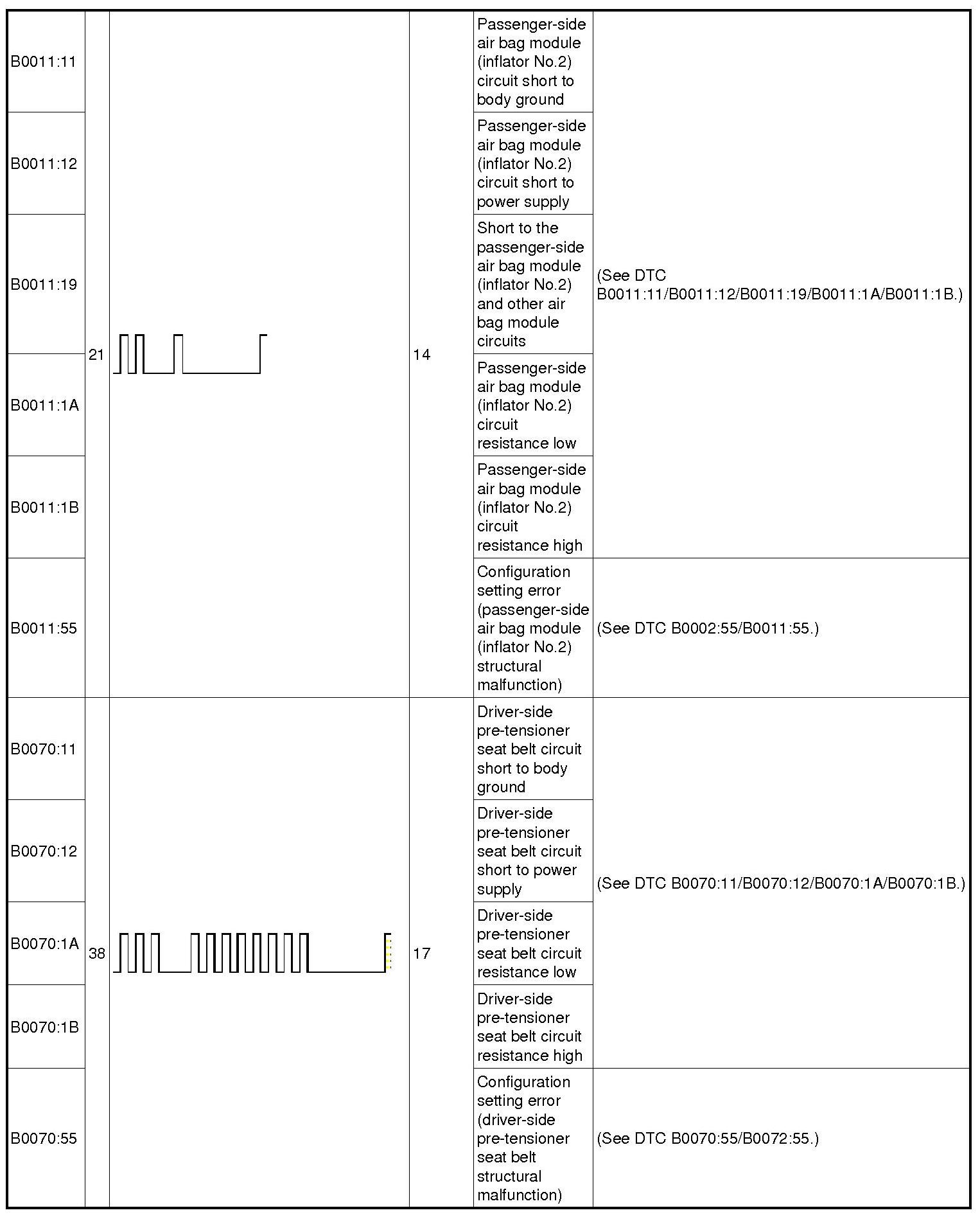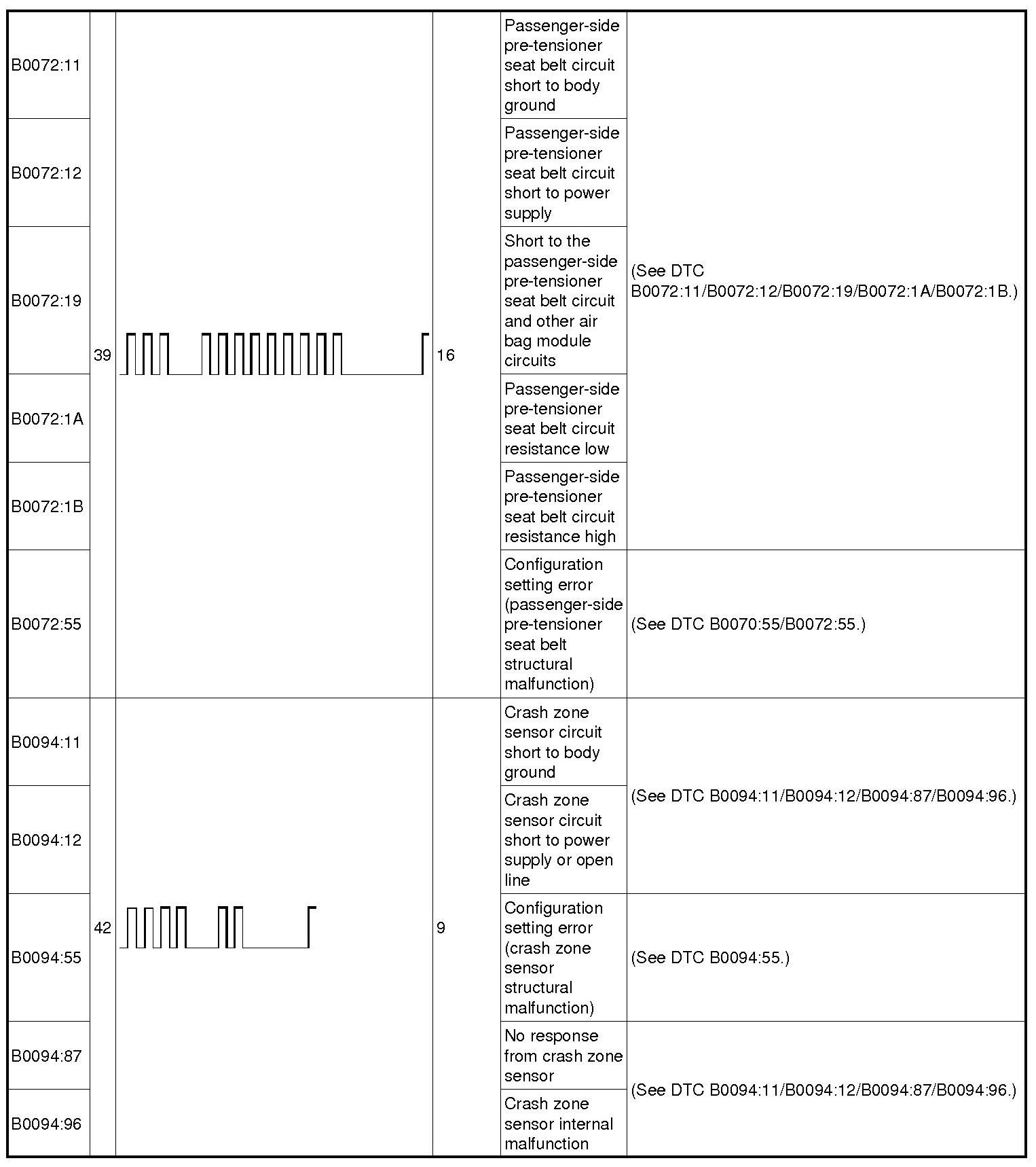 DTC Table - Restraint System