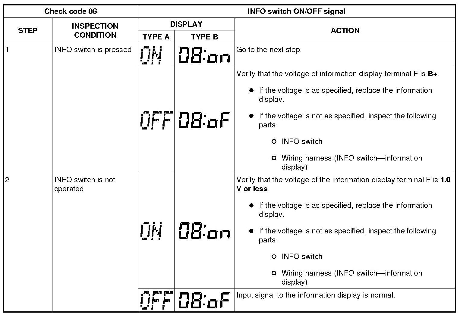 INFORMATION DISPLAY INPUT/OUTPUT CHECK MODE