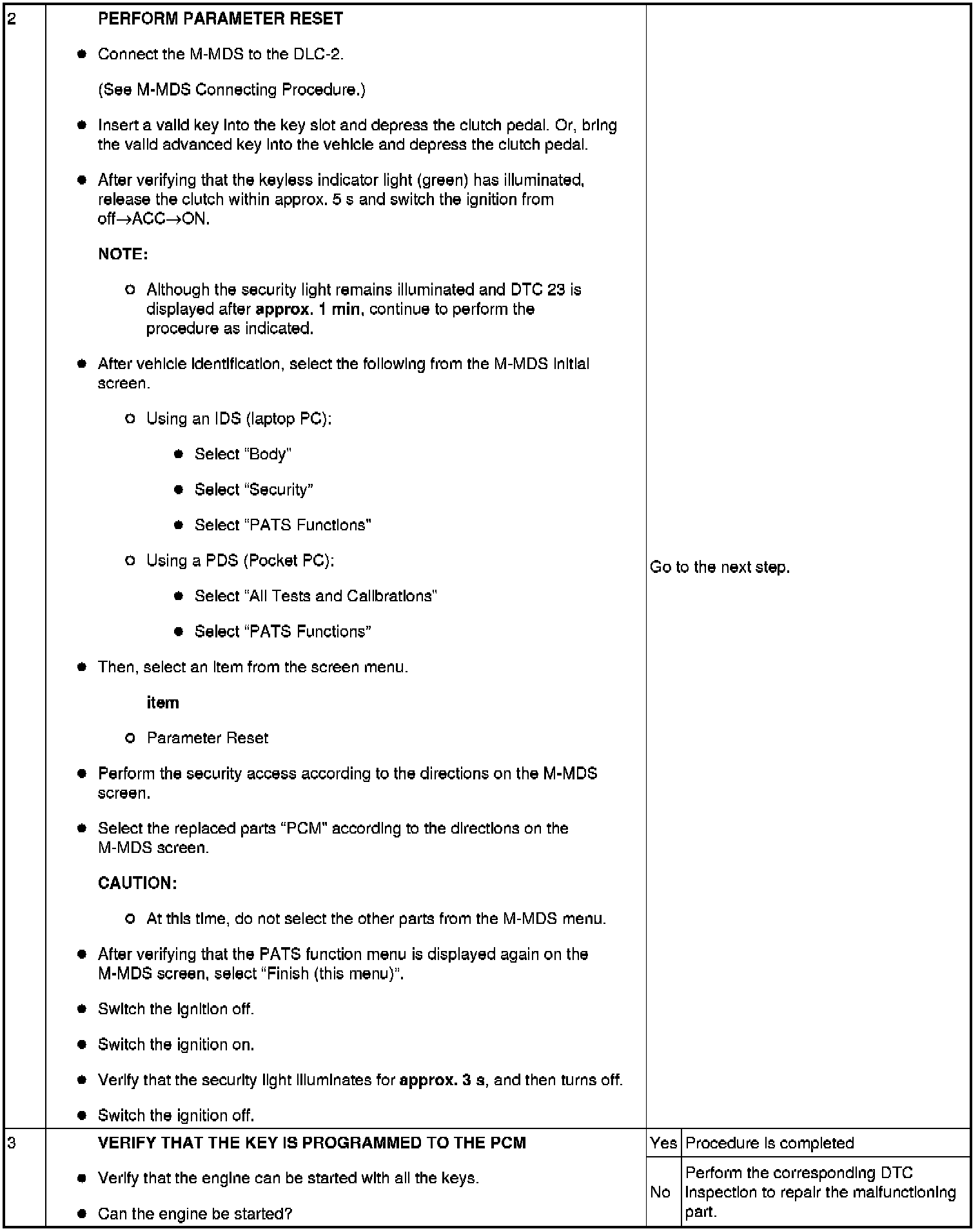No.2 Programming Procedure Due to PCM Replacement
