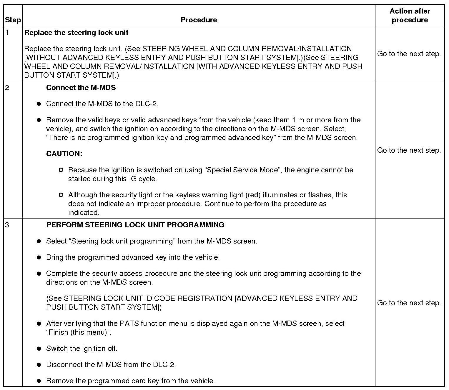 No.3 Programming Procedure Due to Steering Lock Unit Replacement