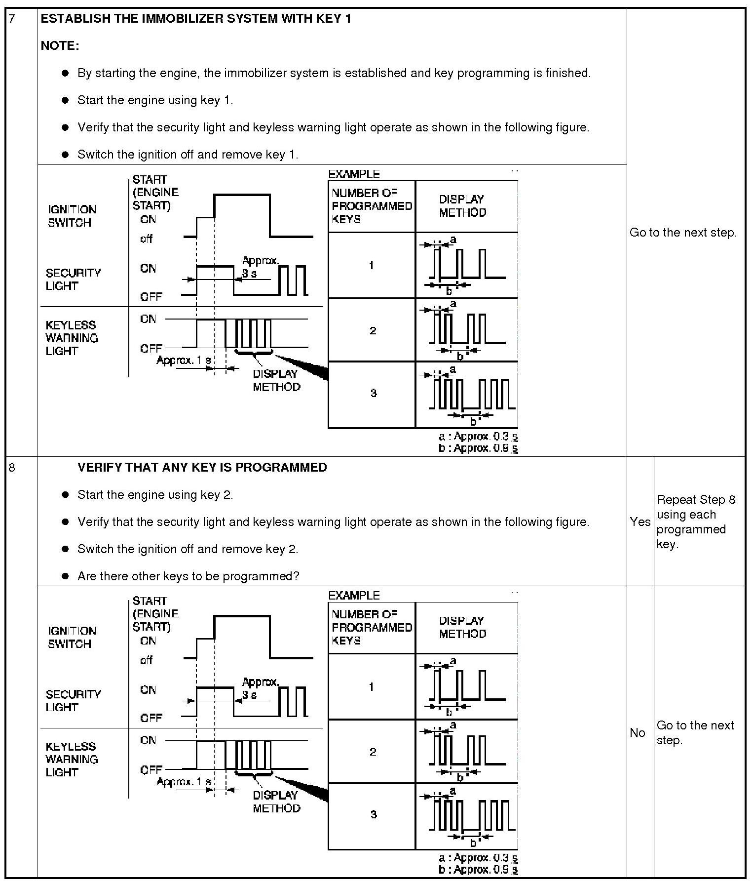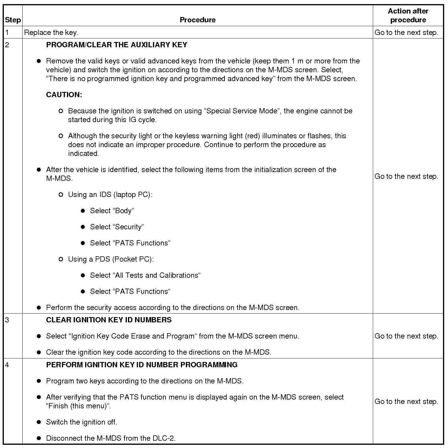Immobilizer System-Related Parts Service and Programming Procedure Table: