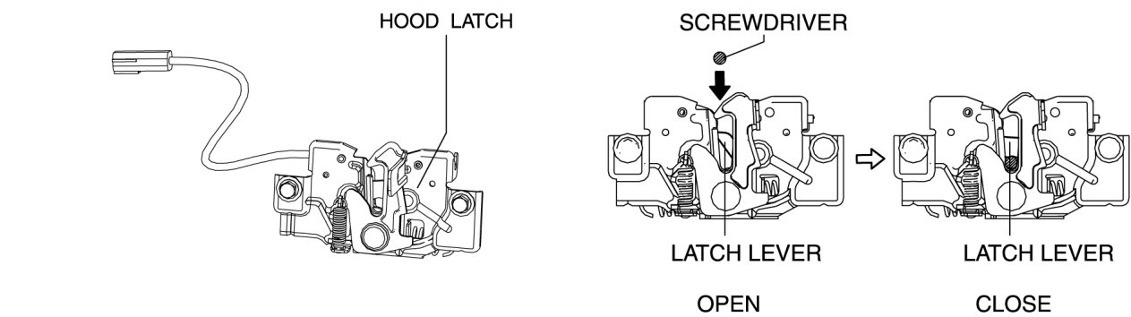 - If not as indicated in the table, replace the hood latch.