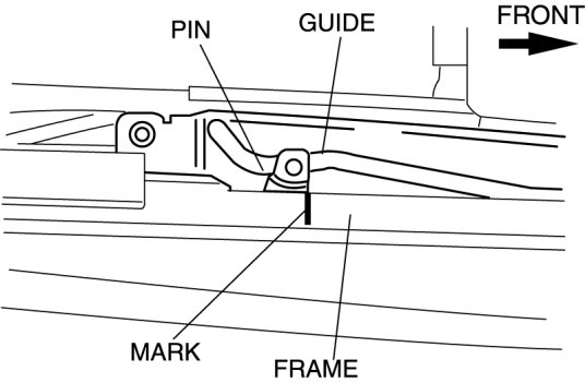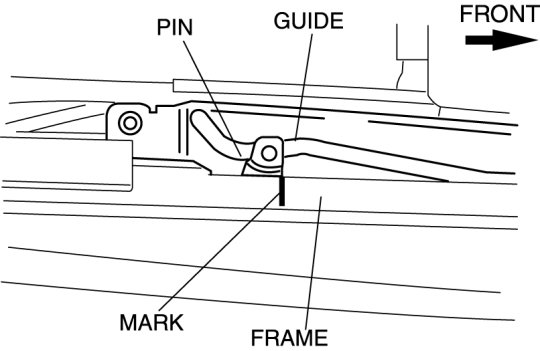 - If the guide or sunroof motor is removed, the glass panel will not be positioned properly after the re-installation. To ensure proper positioning of the glass panel, place alignment marks on the guide pin and frame before removing the guide or sunroof motor.