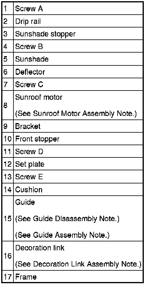 Sunroof Motor Assembly Note