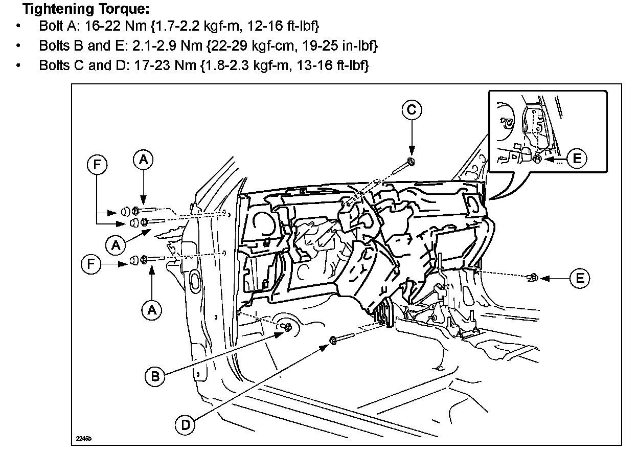 ^ Bolts B and E: 2.1-2.9 Nm {22-29 kgf-cm, 19-25 in-lbf}