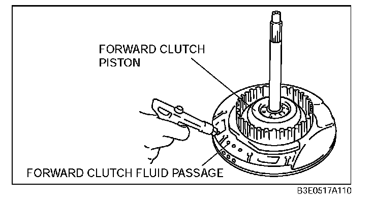 2. Remove the forward clutch piston by applying compressed air through the fluid passage.