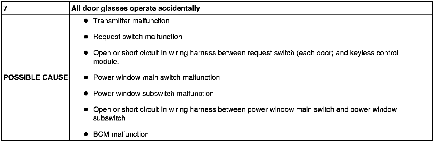No.7 ALL DOOR GLASS OPERATE ACCIDENTALLY [POWER WINDOW SYSTEMS (EXTERIOR OPEN/CLOSE FUNCTION)]