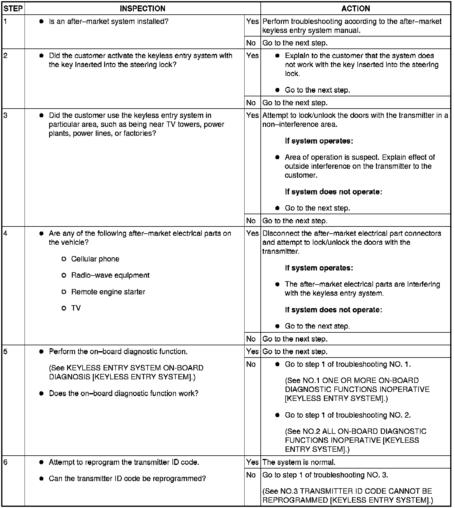 KEYLESS ENTRY SYSTEM PRELIMINARY INSPECTION [KEYLESS ENTRY SYSTEM]