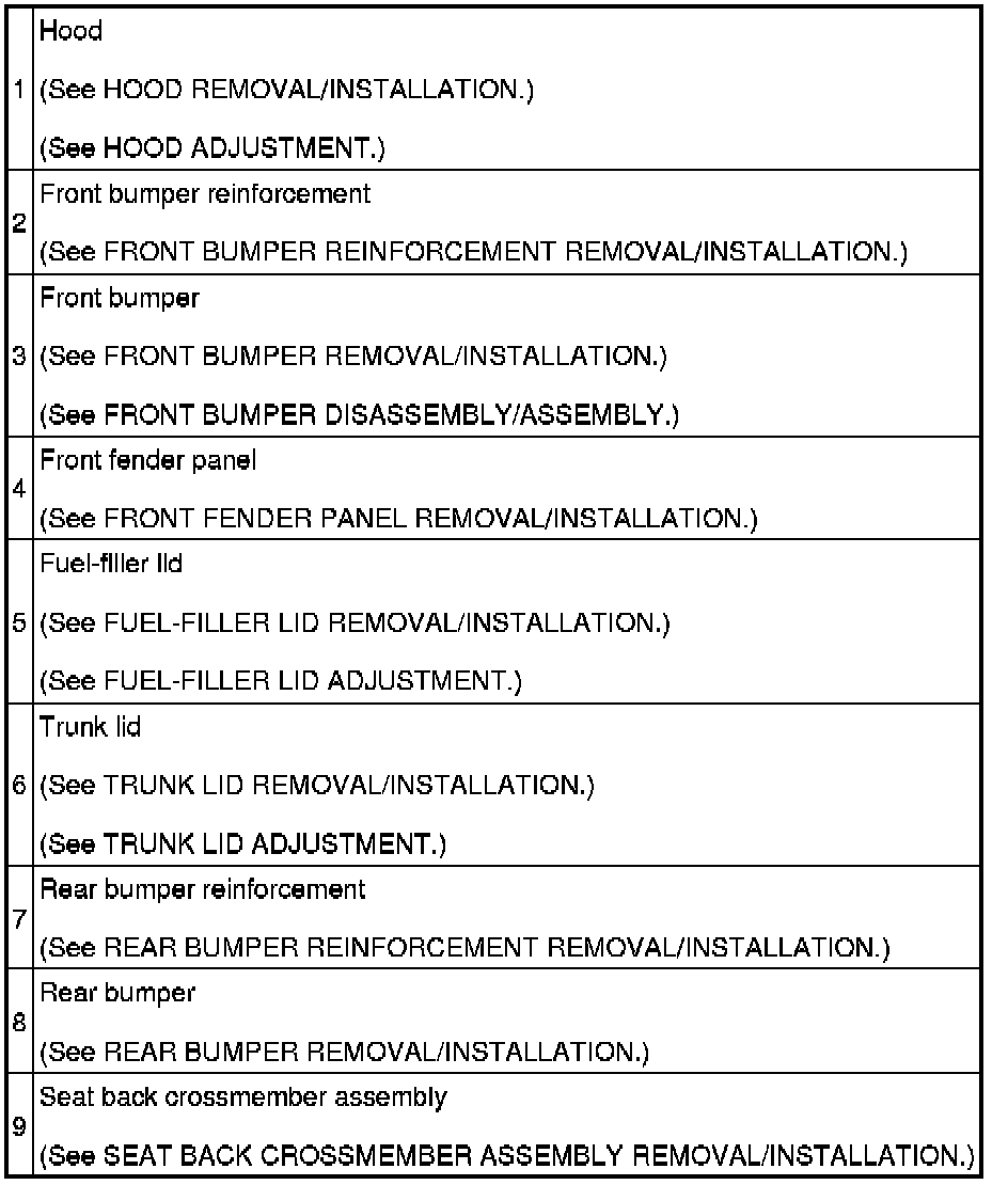 BODY PANELS LOCATION INDEX