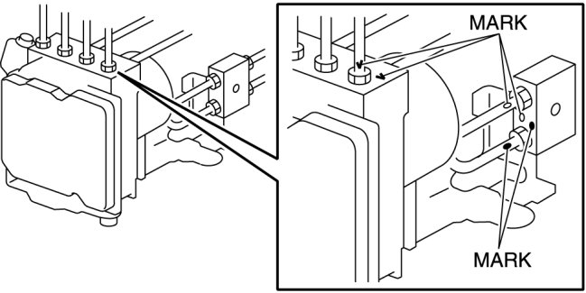 1. Align with the mark made before removing the brake pipes and temporarily install the brake pipes to the DSC HU/CM.