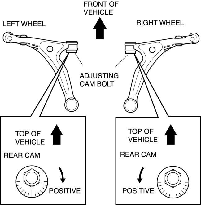 2. Rotate the adjusting cam bolt in either direction to adjust the camber.