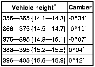 - 16-inch wheel: 1.1±2.6 mm {0.04±0.10 in} (0°09′±0°22′)