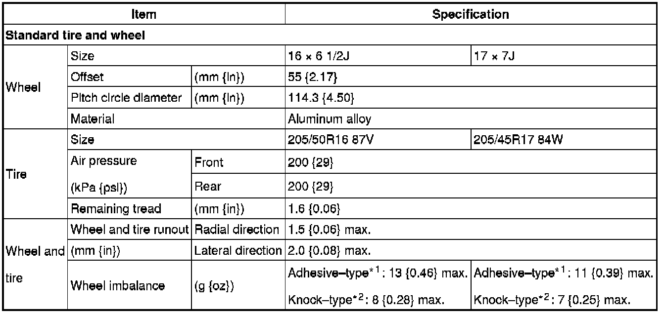 One balance weight: 60 g {2.12 oz} max. If the total weight exceeds 100 g {3.53 oz} on one side, rebalance after moving the tire around on the rim. Do not use three or more balance weights.