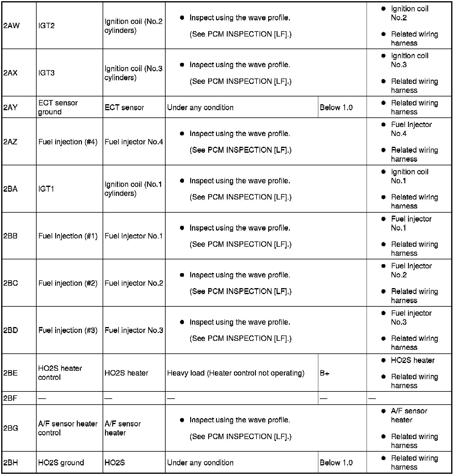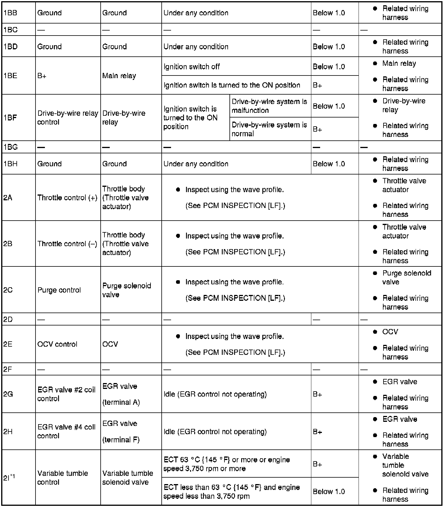 - The PCM terminal voltage can vary with the conditions when measuring and changes due to aged deterioration on the vehicle, causing false diagnosis. Therefore determine comprehensively where the malfunction occurs among the input systems, output systems, and the PCM.