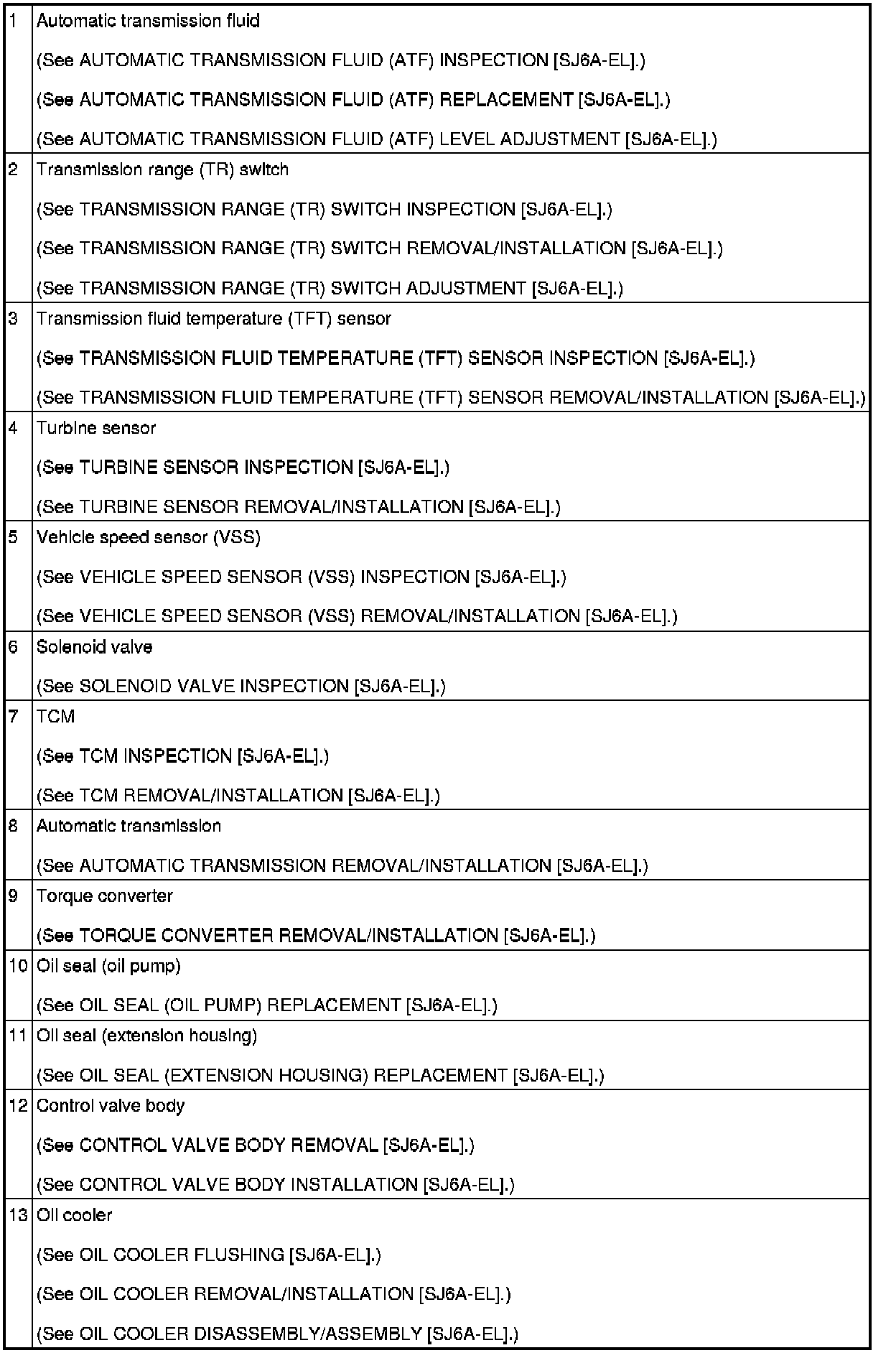 AUTOMATIC TRANSMISSION LOCATION INDEX [SJ6A-EL]