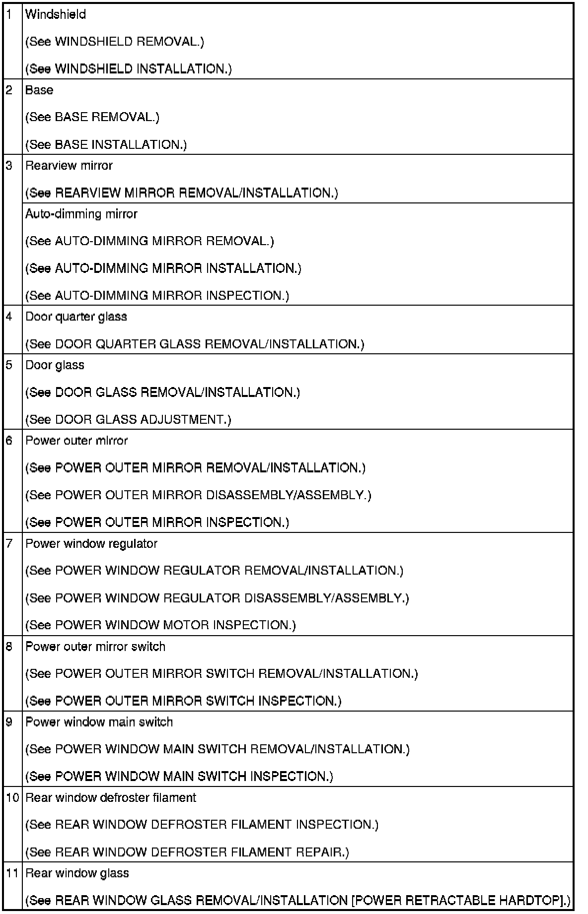 GLASS/WINDOWS/MIRRORS LOCATION INDEX