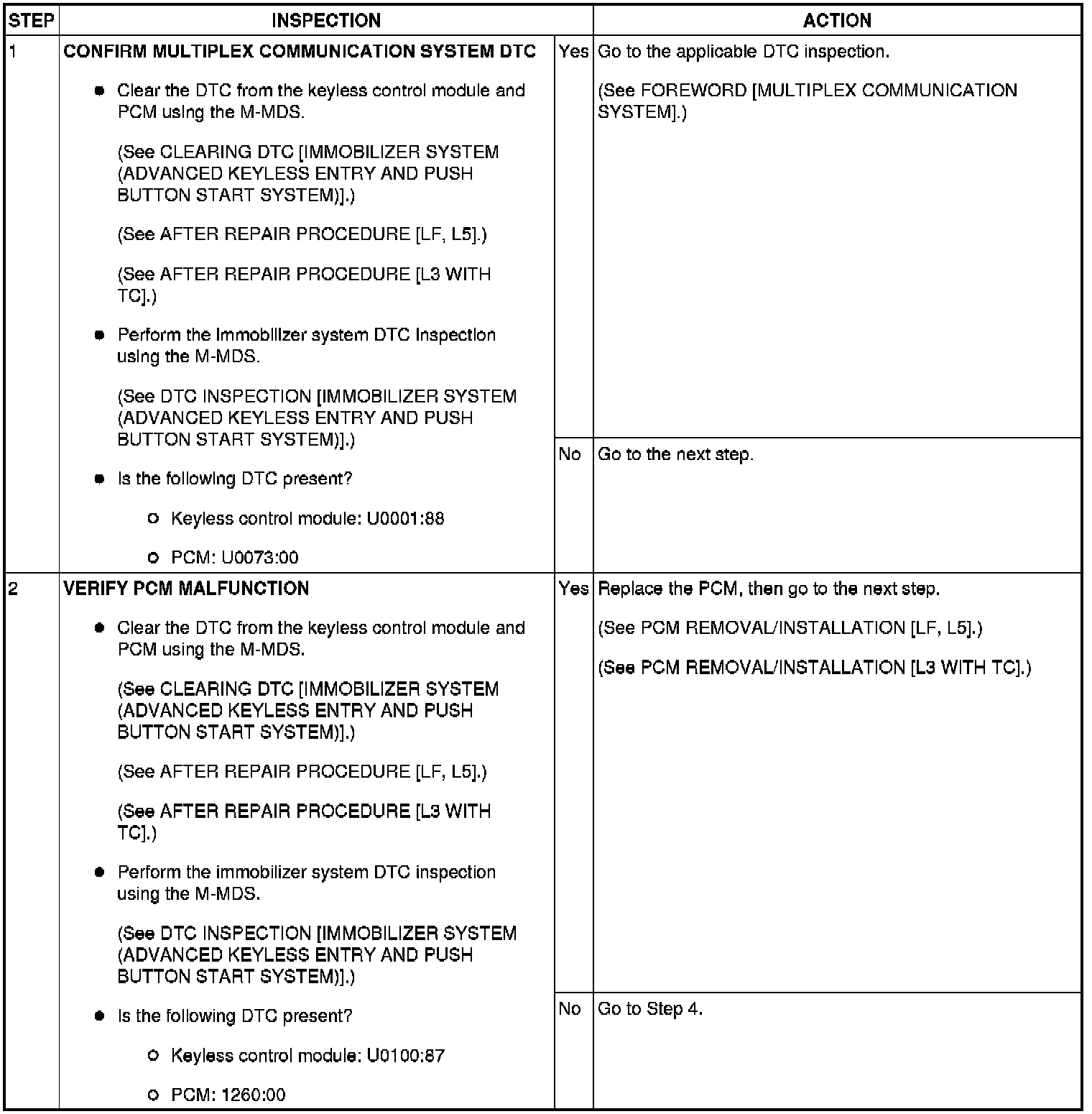 SECURITY LIGHT: 16, DTC: U0100:87/P1260:00 [IMMOBILIZER SYSTEM (ADVANCED KEYLESS ENTRY AND PUSH BUTTON START SYSTEM)]