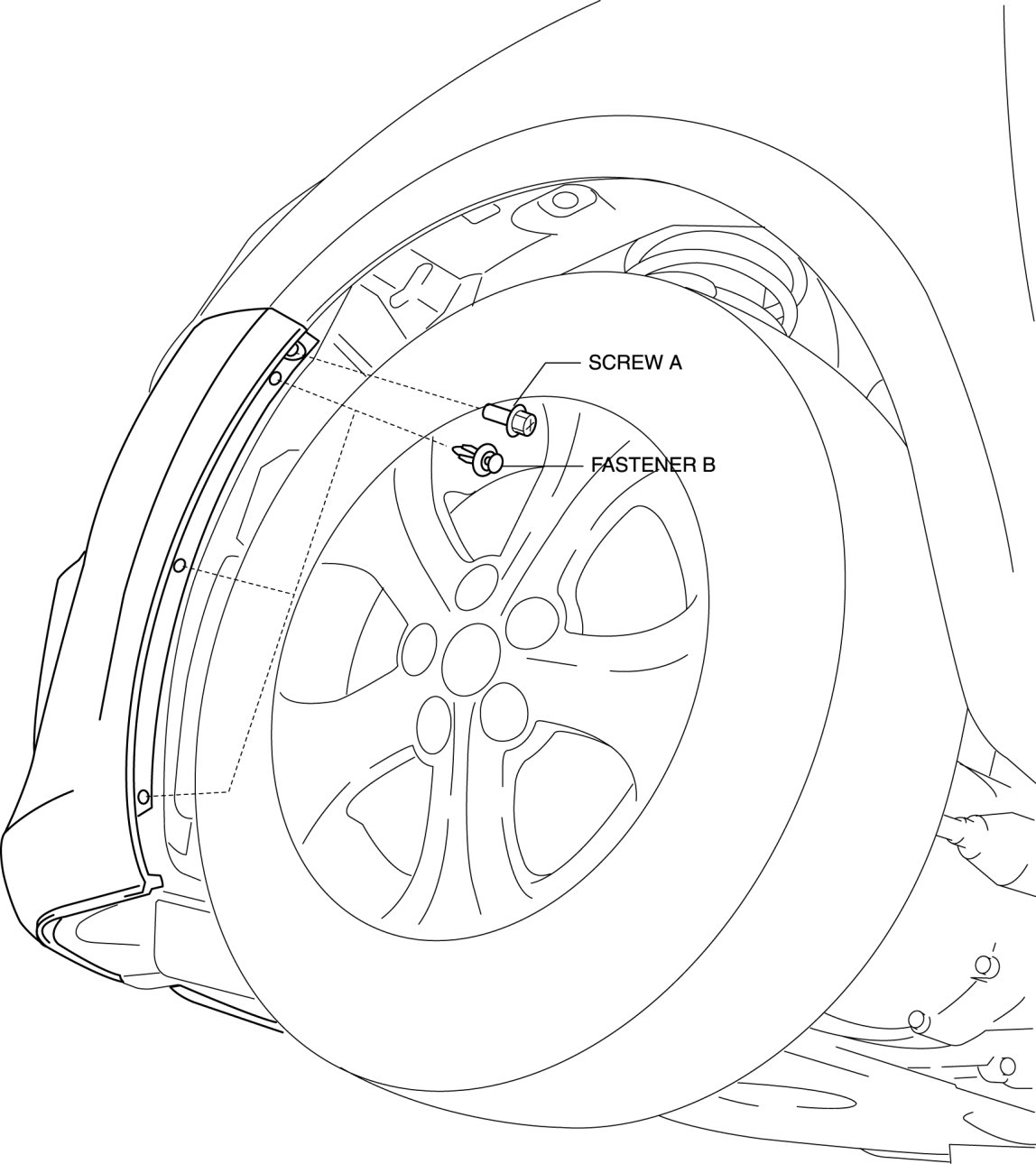 2. Remove screw A and fasteners B.