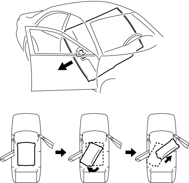 10. Take the headliner out from the opened front passenger-side door. (4SD)