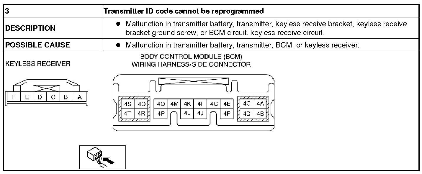 NO.3 TRANSMITTER ID CODE CANNOT BE REPROGRAMMED [KEYLESS ENTRY SYSTEM]