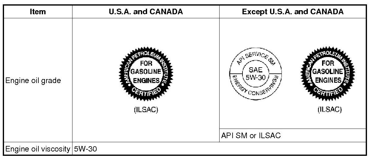 6. Refill with the following type and amount of the engine oil. Engine oil specification