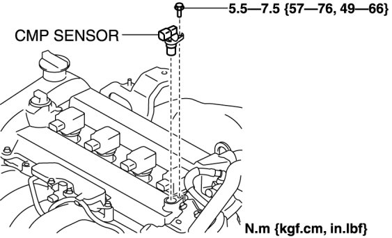 - When replacing the CMP sensor, make sure there is no foreign material on it such as metal shavings. If it is installed with foreign material, the sensor output signal will malfunction resulting from fluctuation in magnetic flux and cause a deterioration in engine control.