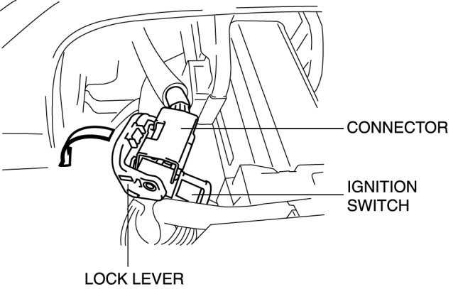 5. Disconnect the ignition switch connector and key interlock solenoid connector.