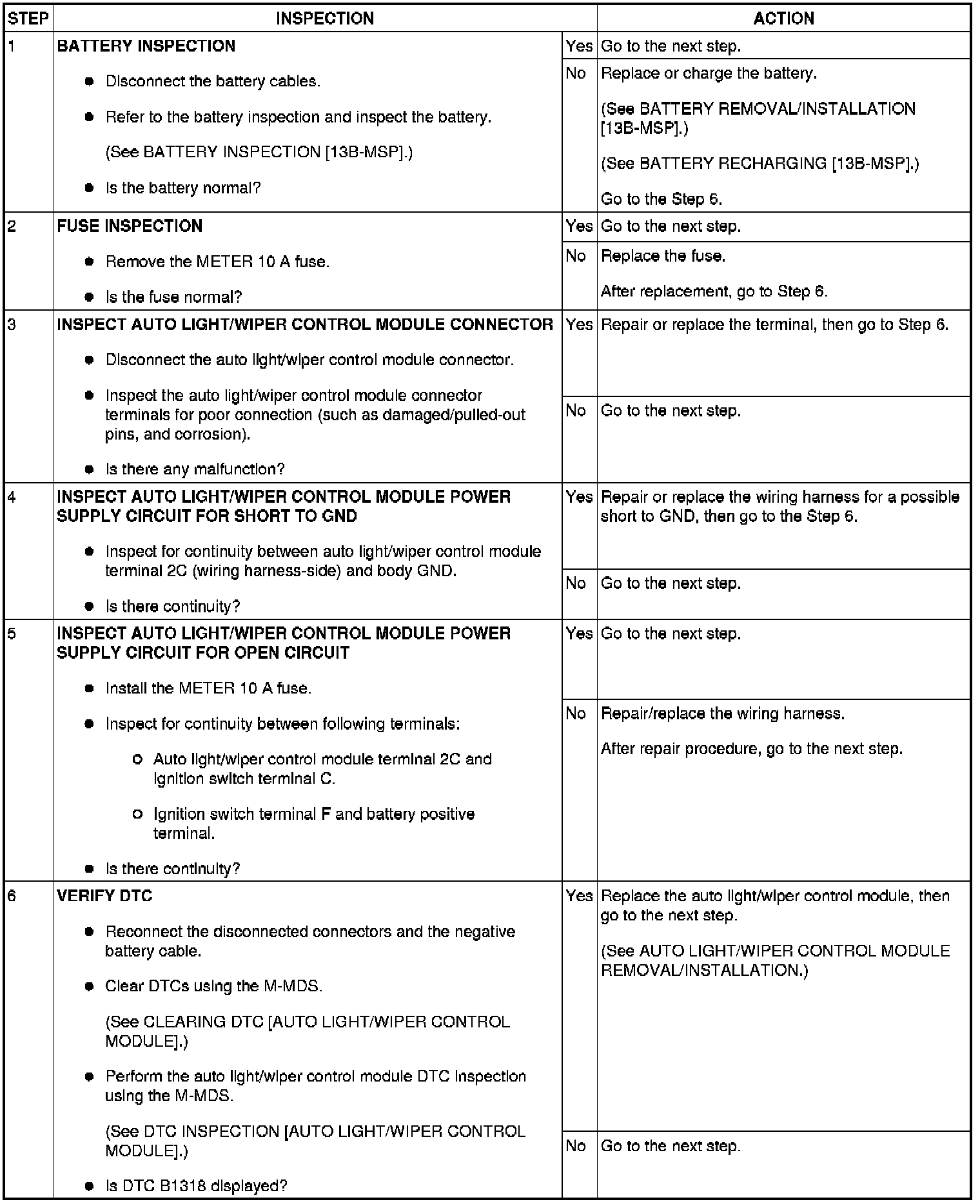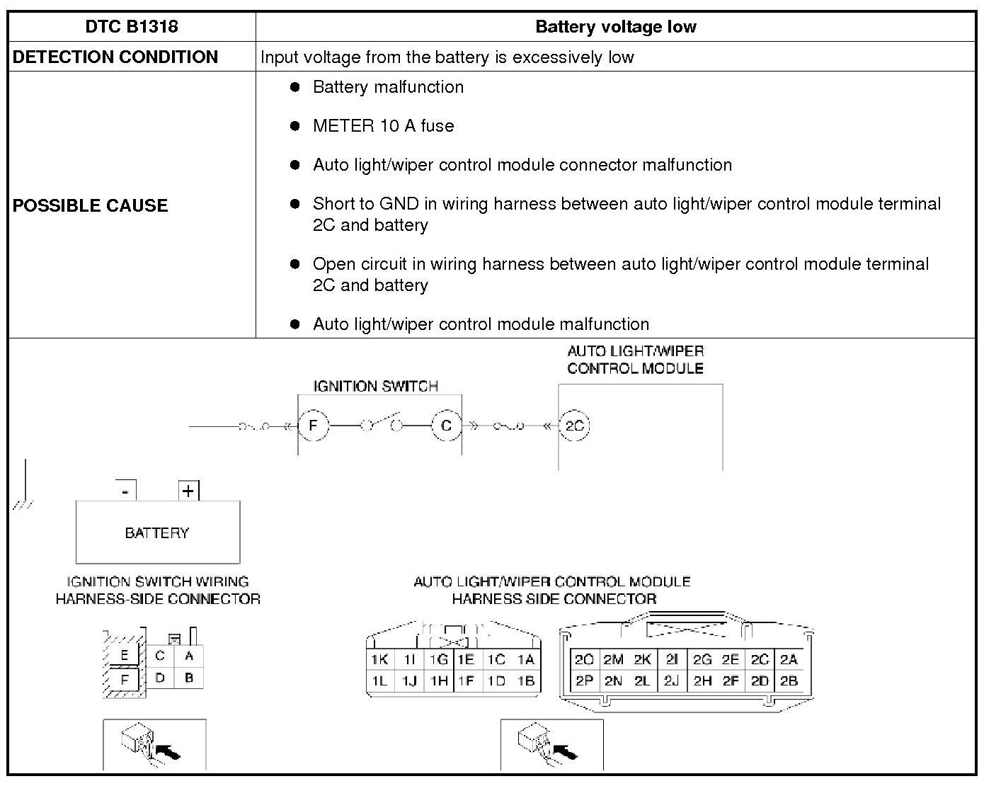 DTC B1318 [AUTO LIGHT/WIPER CONTROL MODULE]