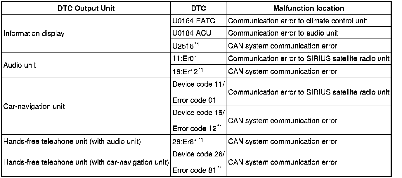 DTC TABLE [MULTIPLEX COMMUNICATION SYSTEM]