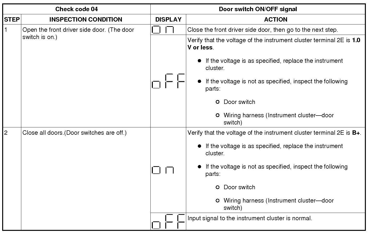 INSTRUMENT CLUSTER INPUT/OUTPUT CHECK MODE