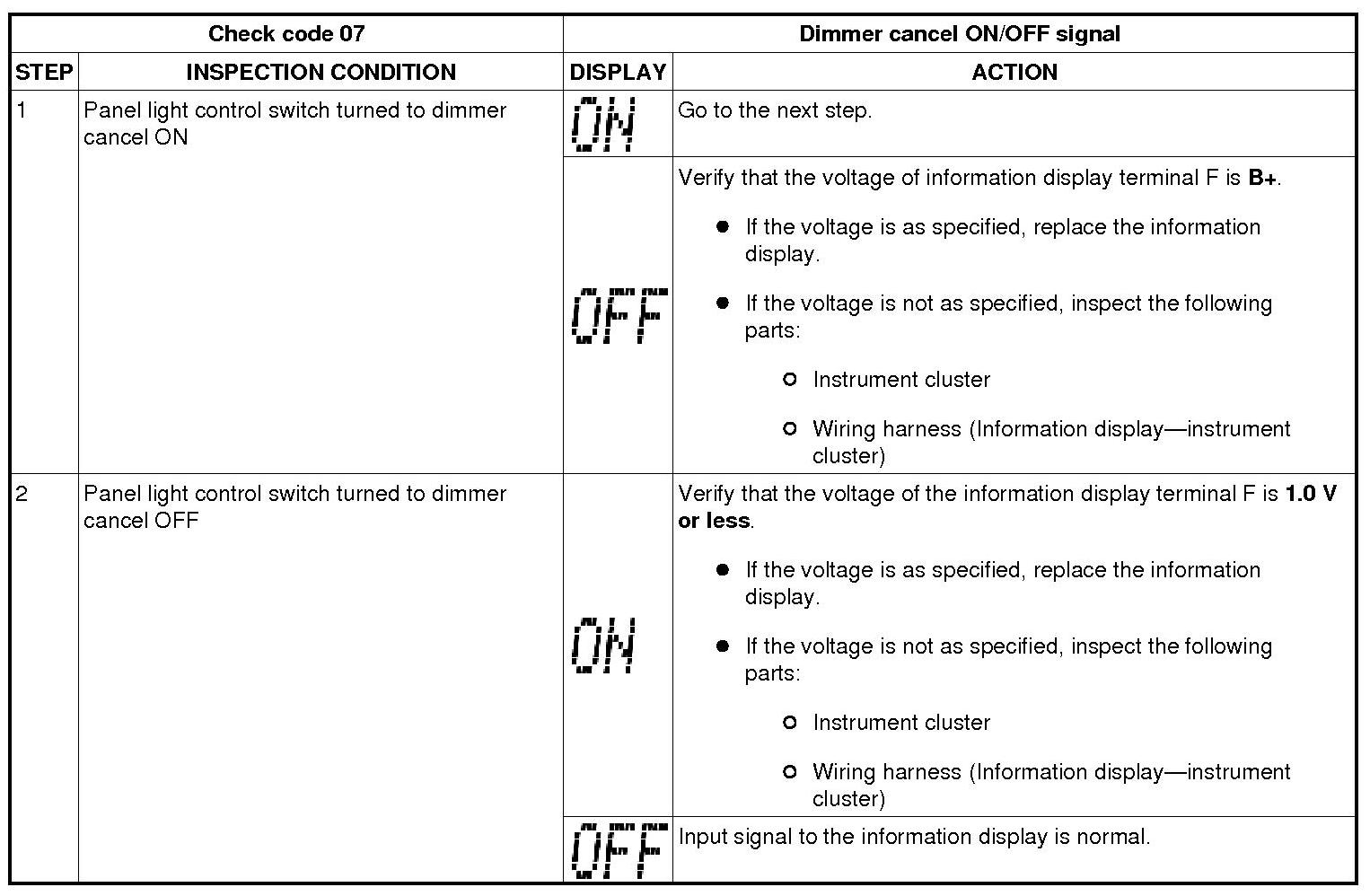 INFORMATION DISPLAY INPUT/OUTPUT CHECK MODE