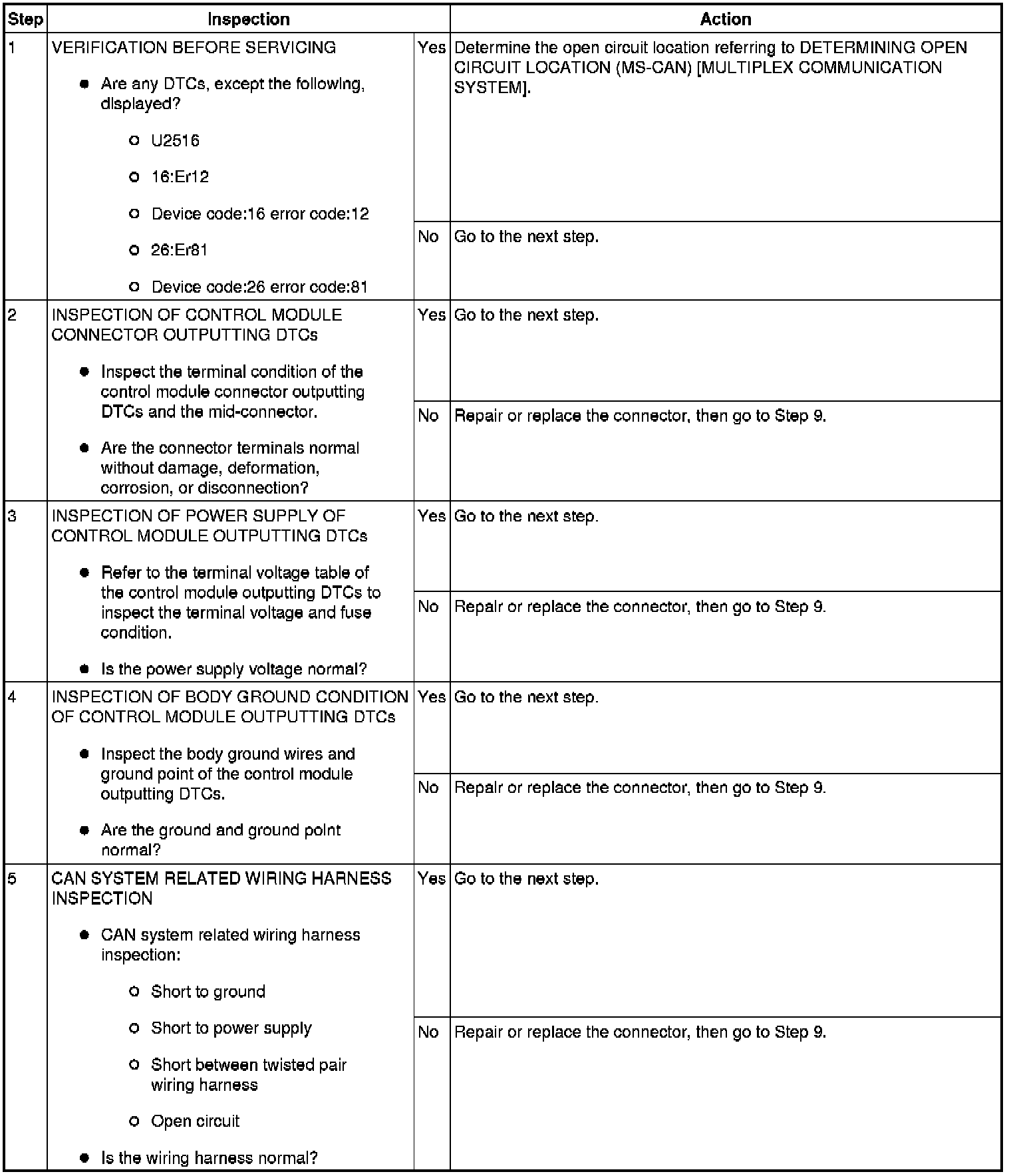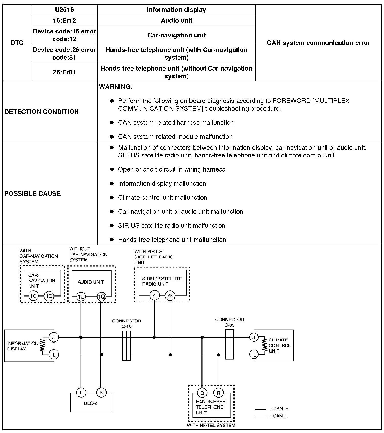 DTC U2516, 16:Er12, DEVICE CODE:16 ERROR CODE:12, 26:Er81, DEVICE CODE:26 ERROR CODE:81 [MULTIPLEX COMMUNICATION SYSTEM]