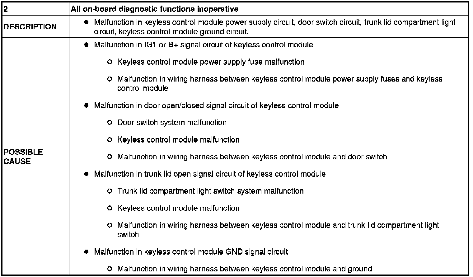 No.2 All on-Board Diagnostic Functions Inoperative - Keyless Entry System