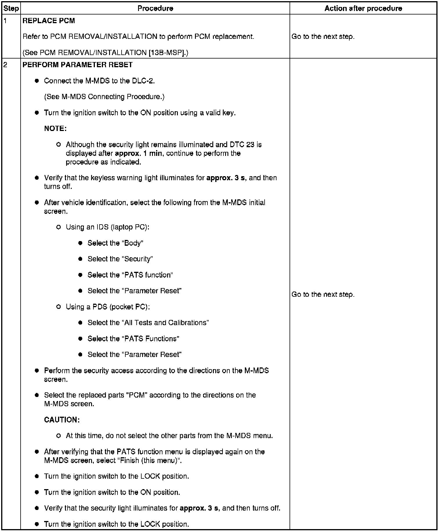 No.4 Programming Procedure Due to PCM Replacement