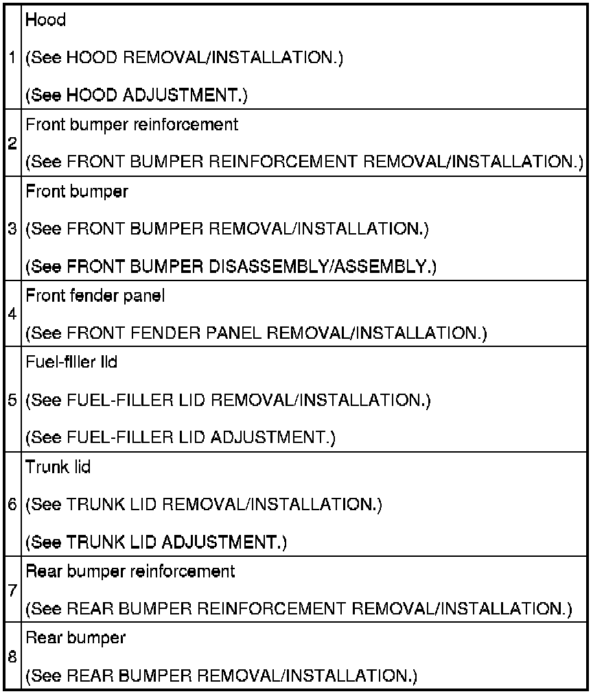 BODY PANELS LOCATION INDEX