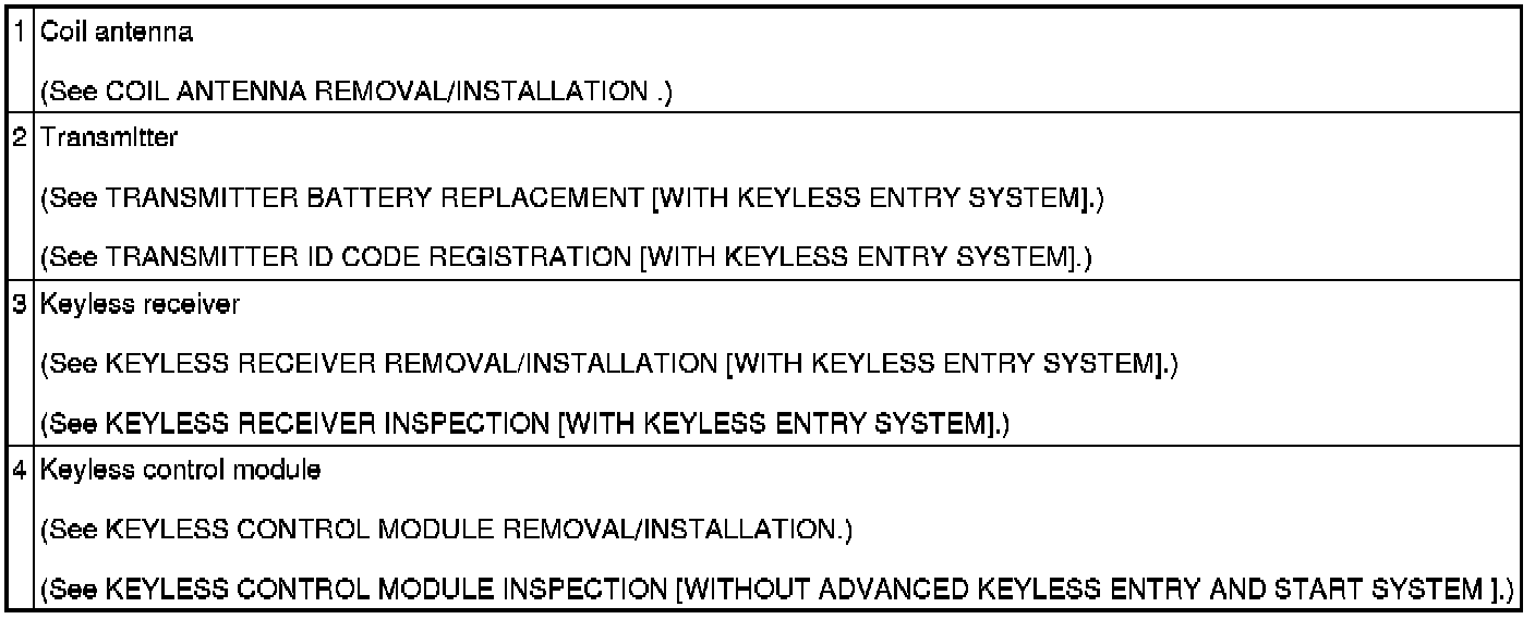 Keyless Entry System and Immobilizer System [Keyless entry System]
