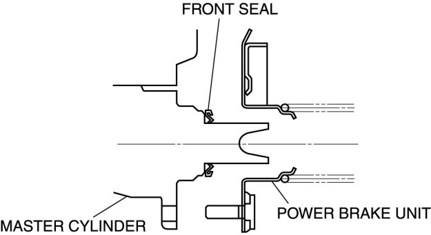 - Do not install the master cylinder with the front seal lip protruding. Doing so will create a vacuum leak and loss of braking force.