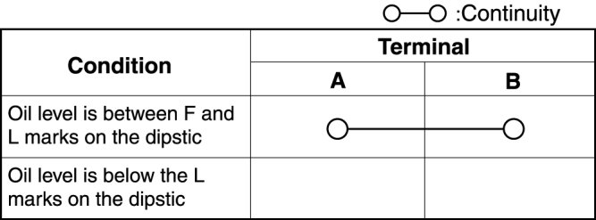 1 If the continuity is not as indicated in the tables, replace the oil level switch. Oil Pan Removal/Installation
