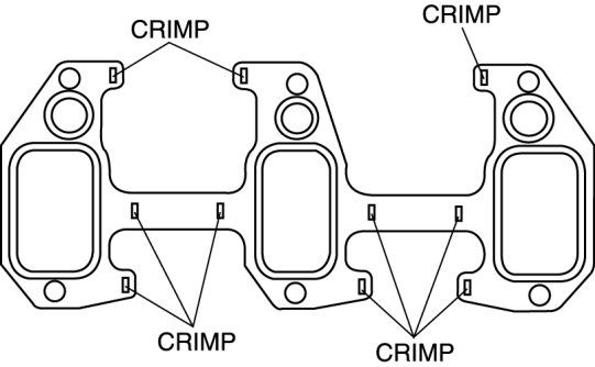 - If a gasket with detached crimps is used on the joint area between the engine and exhaust manifold, exhaust gas will leak. Be careful not to allow the crimps to detach from the gasket. Do not use a gasket if any crimps are detached.