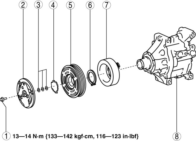 - 13-14 Nm {133 -142 kgf-cm, 116-123 in-lbf}