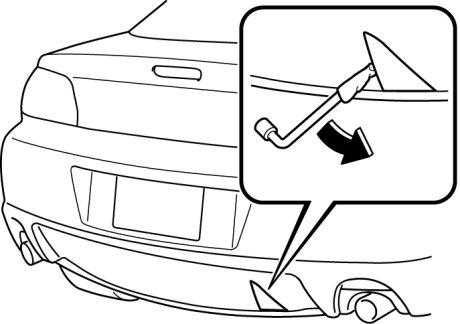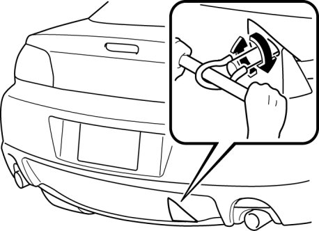 1. Wrap the wheel brace with a soft cloth to prevent damage to a painted bumper, and open the cap located on the front or rear bumper.