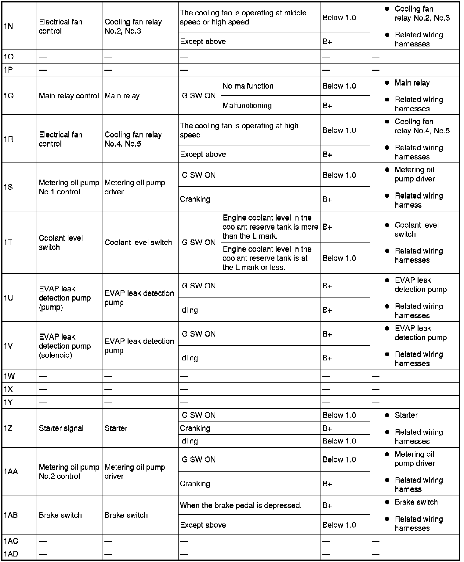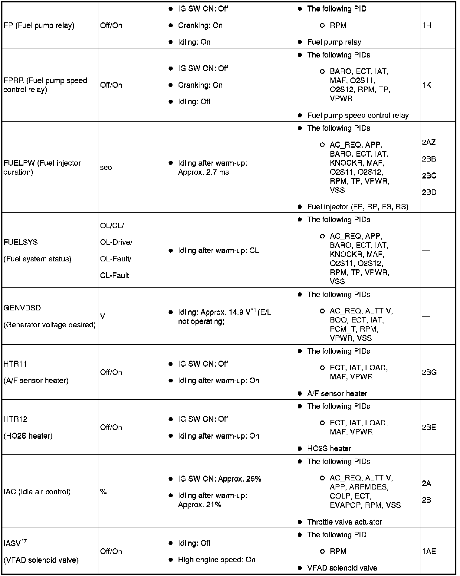 - ACCS, AIP RLY, ALTF, APV, ARPMDES, DEI, ETC_DSD, EVAPCP, FAN1, FAN2, FAN3, FP, FPRR, FUELPW1, GENVDSD, HTR12, IASV, MOP_FL_C, MOP_FL_S, OCV_CLOSE, PACNTV, SSV, test