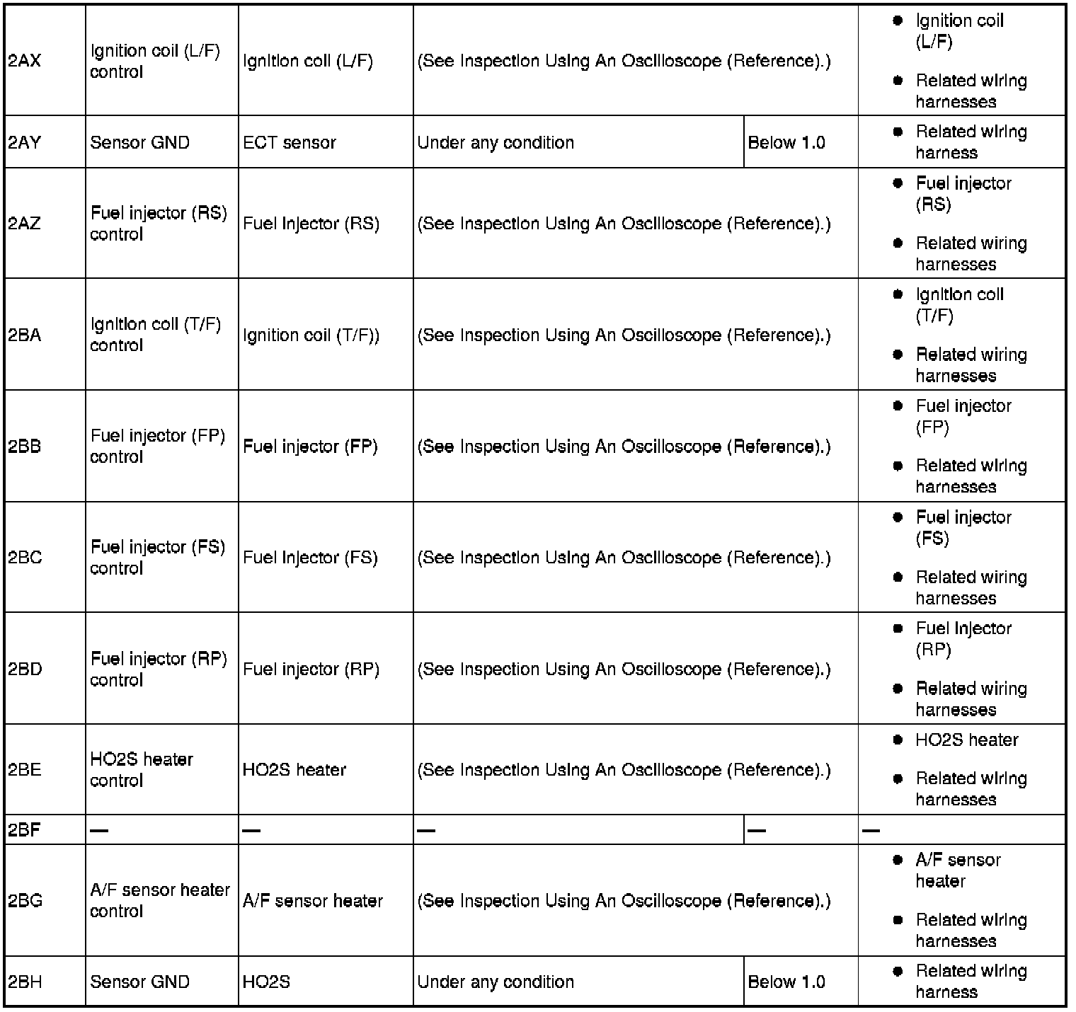 - The duty ratio for the wave pattern can vary with the control conditions. Therefore determine comprehensively where the malfunction occurs among the input systems, output systems, and the PCM.