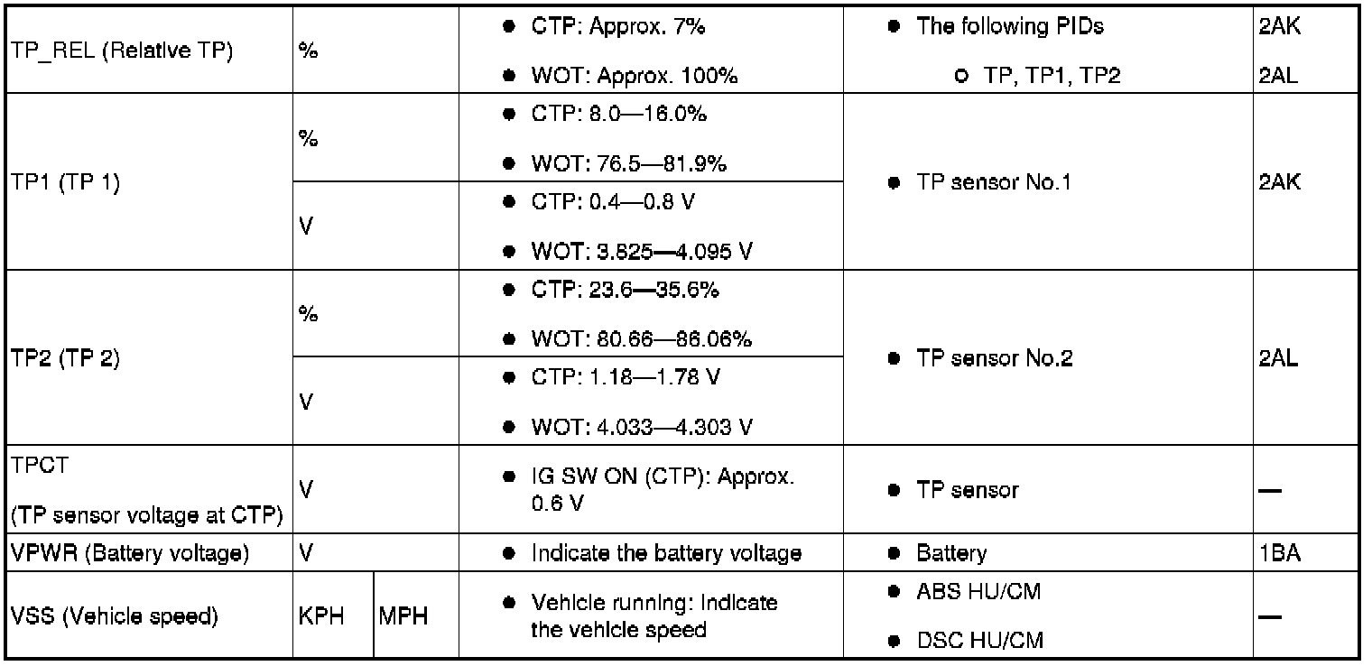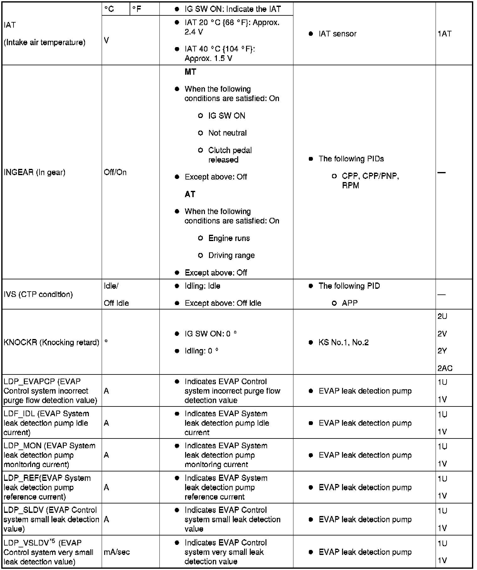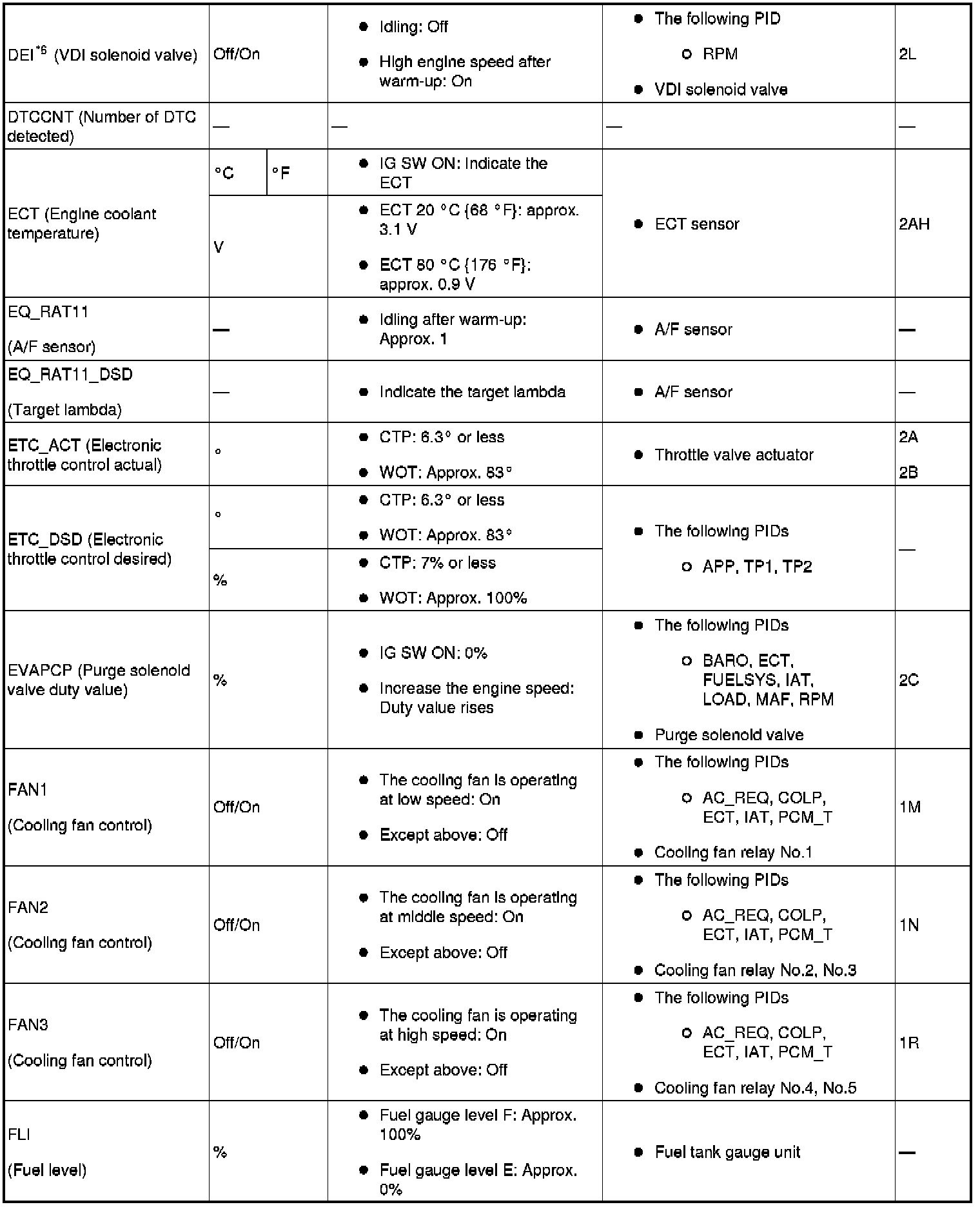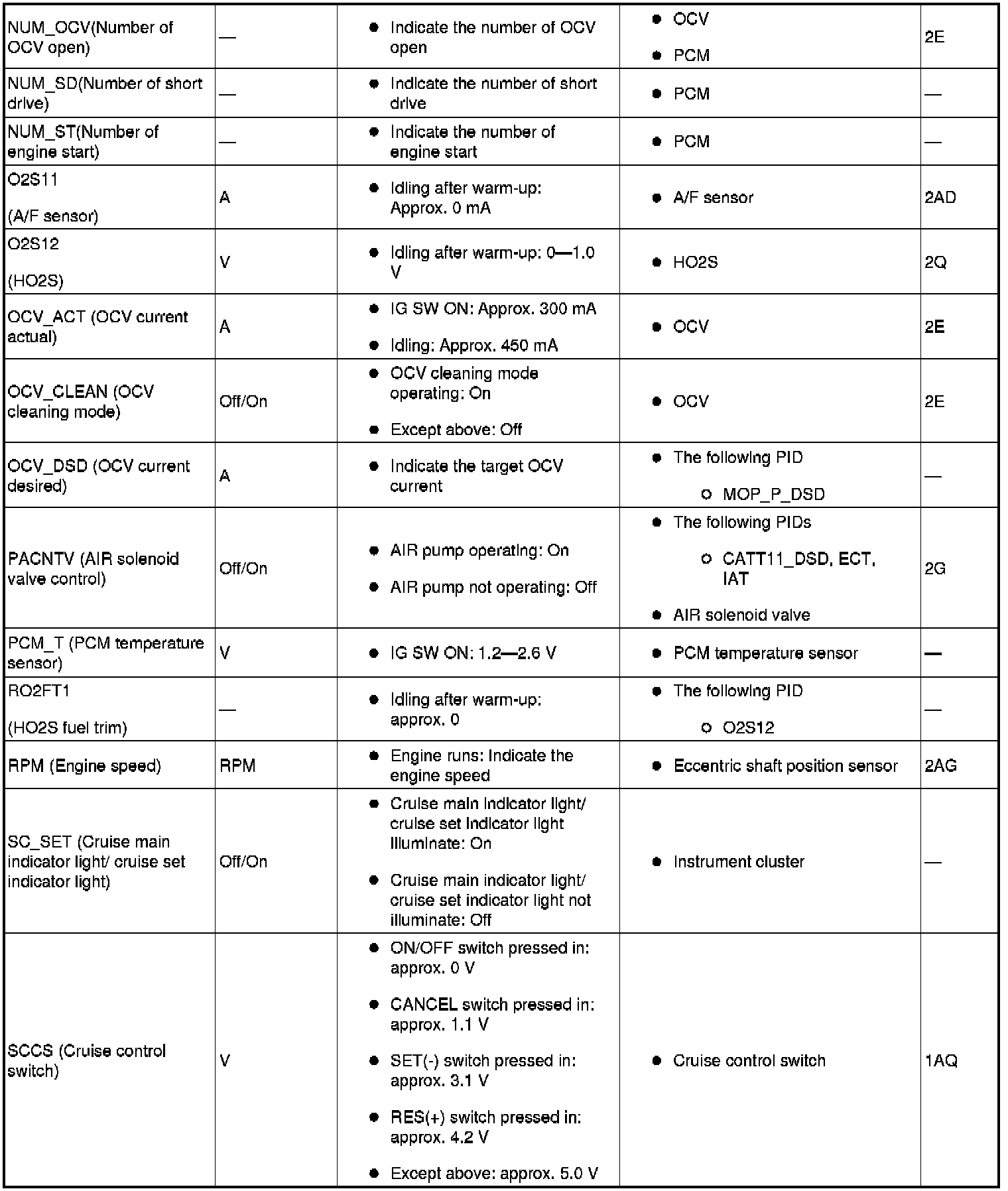 PID/Data Monitor Table Reference (Part 1):
