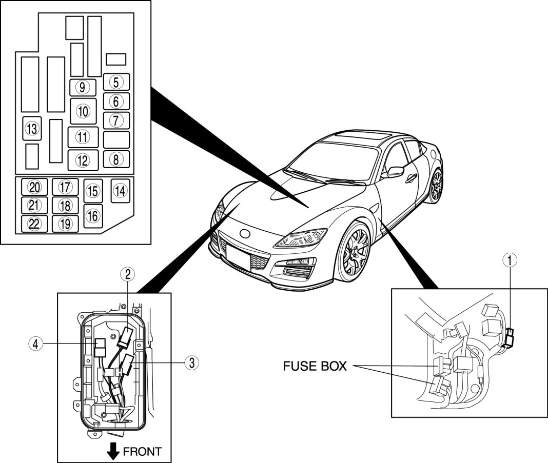 Main Relay (Computer/Fuel System): Locations
