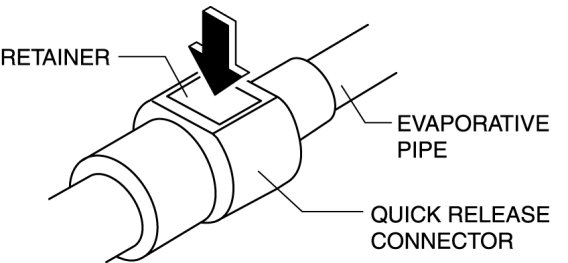 - If the retainer cannot be pushed down, push the evaporative pipe further to the quick release connector.